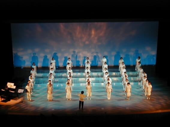 団員一人ひとりのこころの中にある"夢・YUME・ゆめ"をステージというキャンバスに描いてみました。作曲家岩河智子先生に編曲をお願いし、第Ⅲステージは1960年代の歌謡曲で構成しました。日達さんの切り絵をチラシやプログラムだけでなく、ステージにも映し出しました。日達さんの切り絵とのコラボレーションは「時をかさねて」「扉を開けて」と続きました。